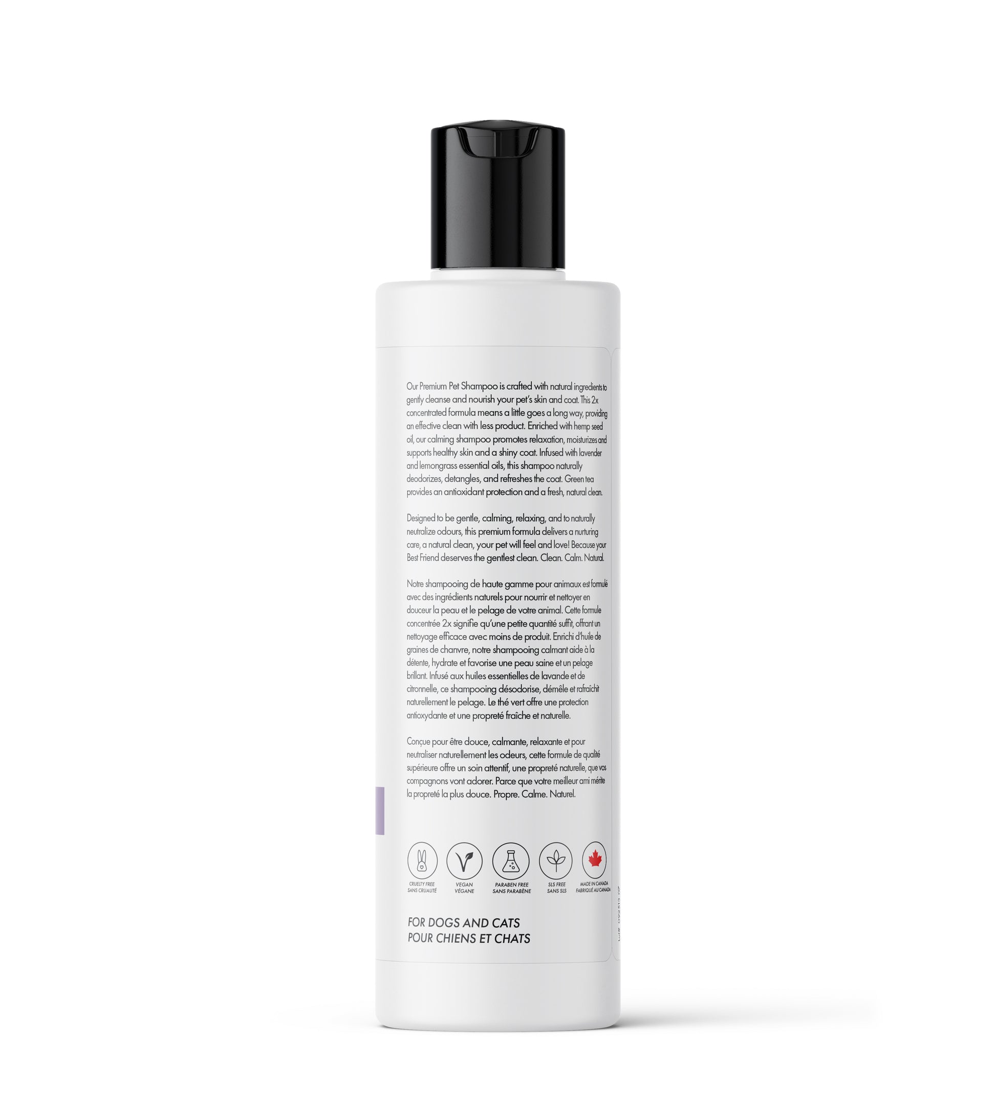 Soothe, protect, and refresh with our Lavender & Lemongrass Organic Pet Shampoo. This gentle yet effective formula cleanses and hydrates the skin while supporting a soft, healthy coat. Made with pure Lavender and Lemongrass essential oils, it helps calm irritation, repel pests, and reduce odour naturally. Enriched with Aloe Vera and Oat Protein, it locks in moisture and strengthens the coat from root to tip. The 2x concentrated blend gives your pet a thorough clean with less product—keeping their skin balanced, their coat shiny, and their confidence high.